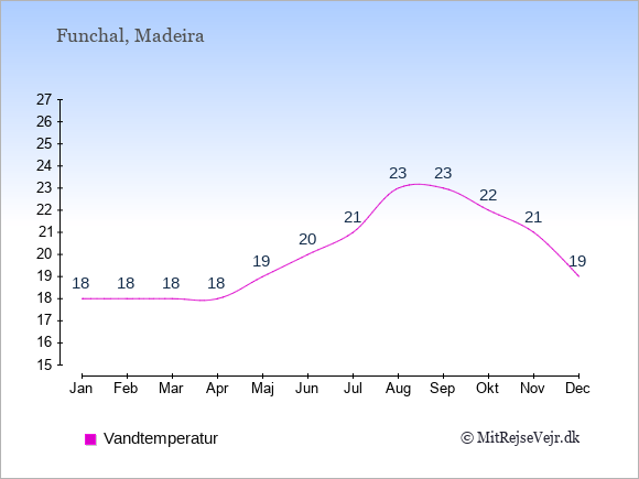 Du kan også se vejrudsigten for Funchal med den aktuelle vandtemperatur her: Vejrudsigt Funchal, vejret lige nu.