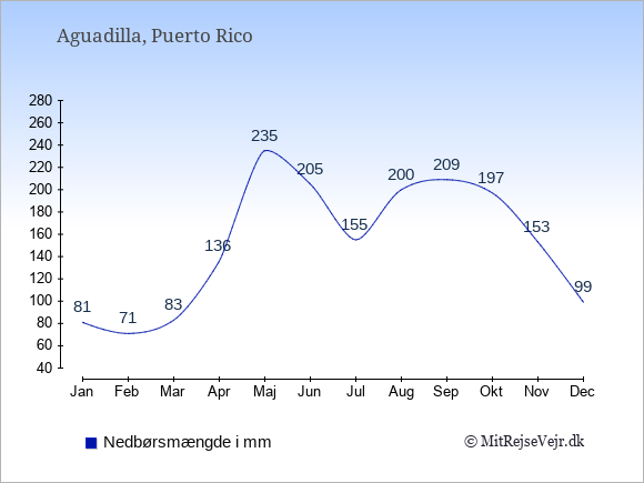 Se også vejret i Aguadilla året rundt uden data for København.