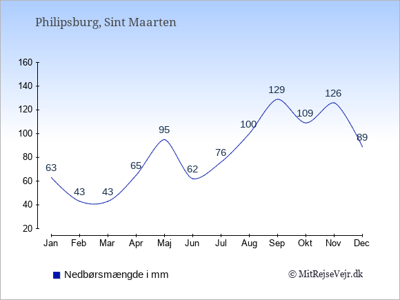 Se klimadata for Philipsburg sammenlignet med klimaet i Danmark.
