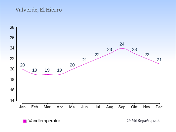Se også vejret i Valverde året rundt uden data for København.