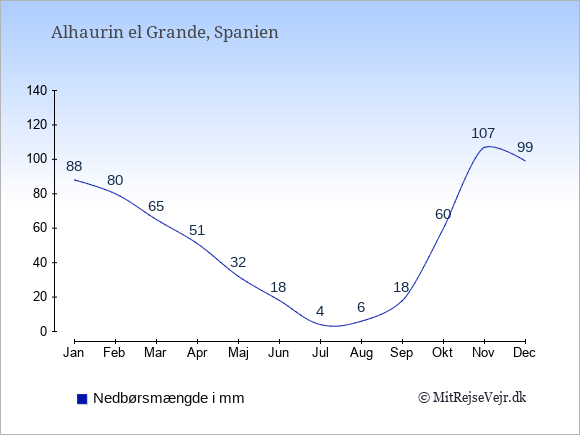 Hvis du vil se, hvordan vejret i Alhaurin el Grande adskiller sig fra vejret derhjemme, kan du sammenligne tallene måned for måned med de tilsvarende tal for Danmark under Alhaurin el Grande: klima & vejr.