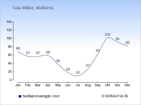 Vejret i Cala Millor er som regel bedst i de måneder, hvor der er mange solskinstimer og få nedbørsdage.