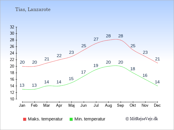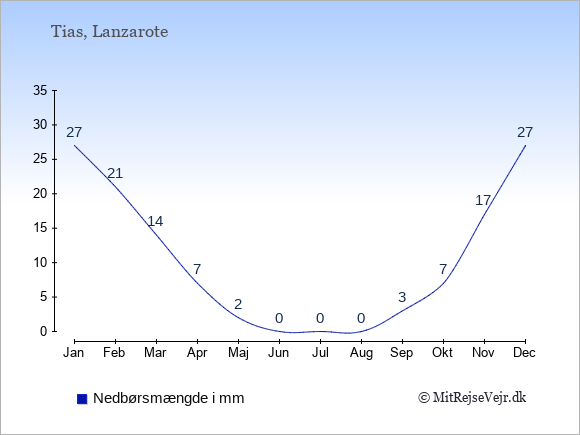 Gennemsnitligt vejr i Tias, Lanzarote