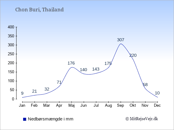 Hvis du vil se, hvordan vejret i Chon Buri adskiller sig fra vejret derhjemme, kan du sammenligne tallene måned for måned med de tilsvarende tal for Danmark under Chon Buri: klima & vejr.