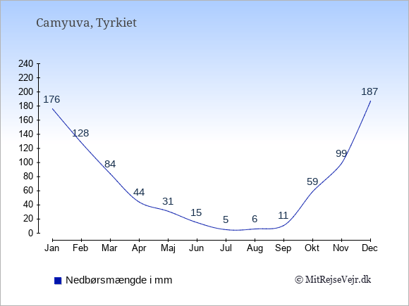 Du kan også se vejrudsigten for Camyuva med den aktuelle vandtemperatur her: Vejrudsigt Camyuva, vejret lige nu.