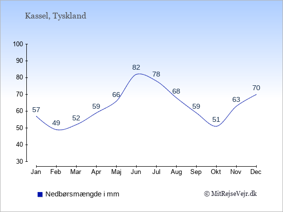 Se også vejret i Kassel året rundt uden data for København.