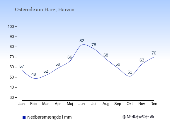 Hvis du vil se, hvordan vejret i Osterode am Harz adskiller sig fra vejret derhjemme, kan du sammenligne tallene måned for måned med de tilsvarende tal for Danmark under Osterode am Harz: klima & vejr.