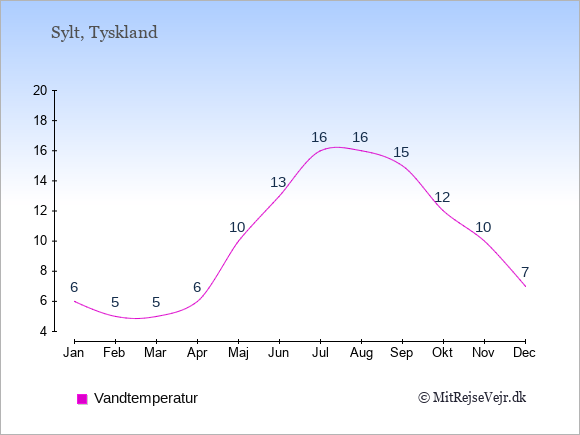Du kan også se vejrudsigten for Sylt med den aktuelle vandtemperatur her: Vejrudsigt Sylt, vejret lige nu.