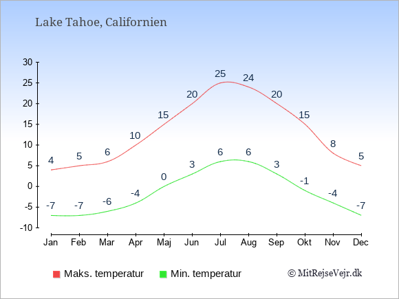 Vejret i NordamerikaKlimadata for USA Klimadata for Lake Tahoe