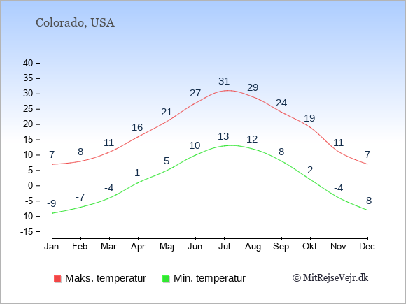 Se også vejret i Colorado året rundt uden data for København.