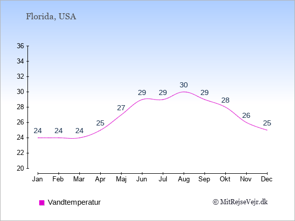 Har du brug for at vide, hvordan vejret bliver de kommende dage, kan du se vejrudsigten for Florida med den aktuelle vandtemperatur her: Vejrudsigt Florida.