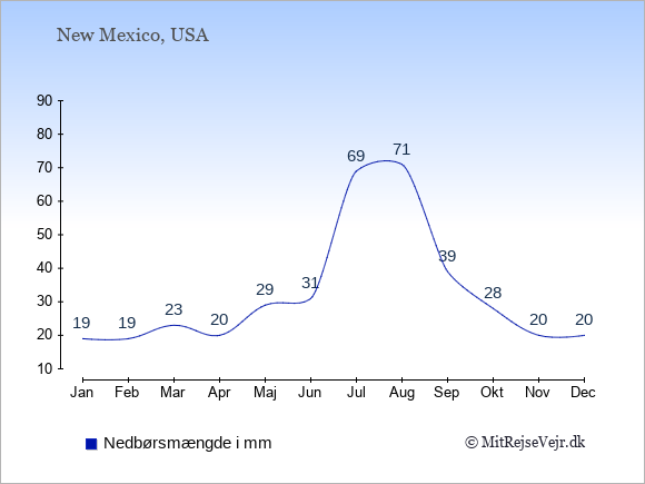 Se klimadata for New Mexico sammenlignet med klimaet i Danmark.