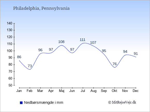 Se også vejret i Philadelphia året rundt uden data for København.