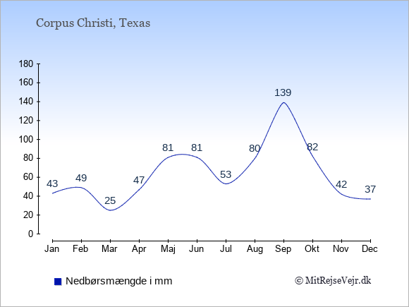 Se også vejret i Corpus Christi året rundt uden data for København.