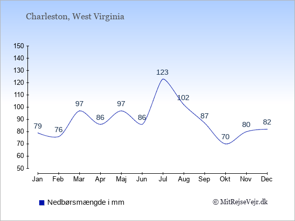 Gennemsnitligt vejr i Charleston, West Virginia