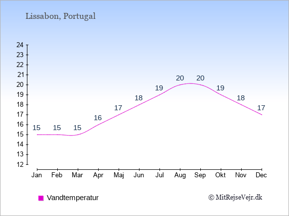 Gennemsnitligt vejr i Portugal (Lissabon)