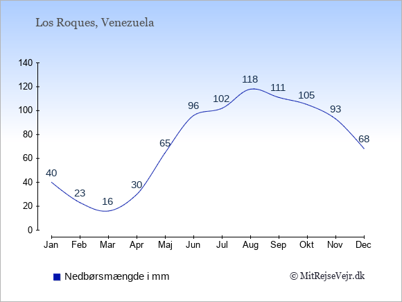 Se også vejret på Los Roques året rundt uden data for København.
