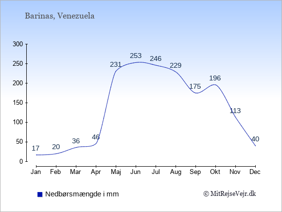 Hvis du vil se, hvordan vejret i Barinas adskiller sig fra vejret derhjemme, kan du sammenligne tallene måned for måned med de tilsvarende tal for Danmark under Barinas: klima & vejr.