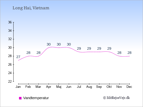 Se klimadata for Long Hai sammenlignet med klimaet i Danmark.